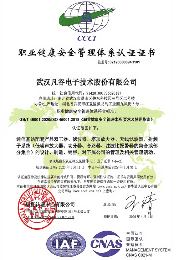 ??? 公司自2014年通過OHSAS18001職業(yè)健康安全管理體系認證,目前保持有ISO45001:2018管理體系認證證書。